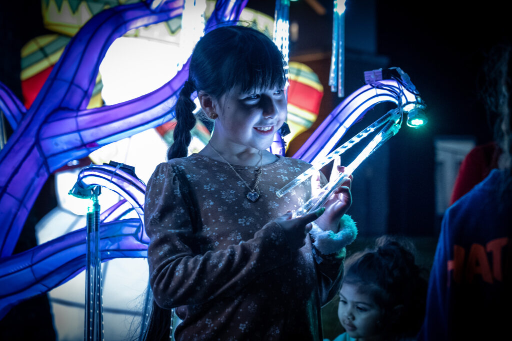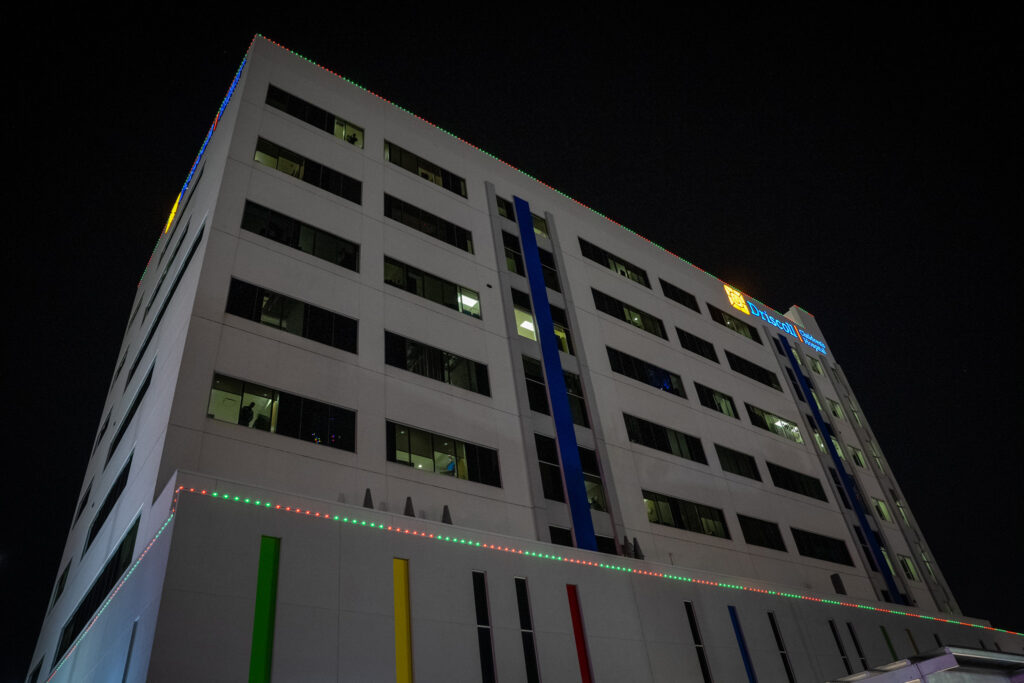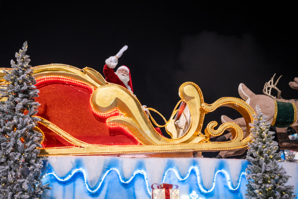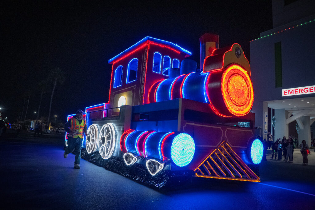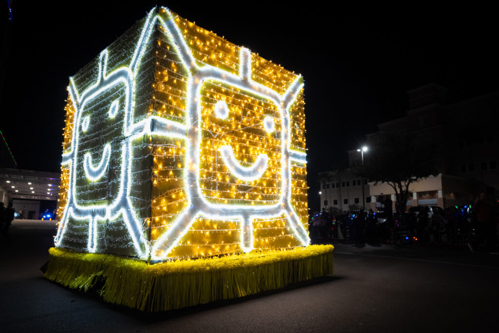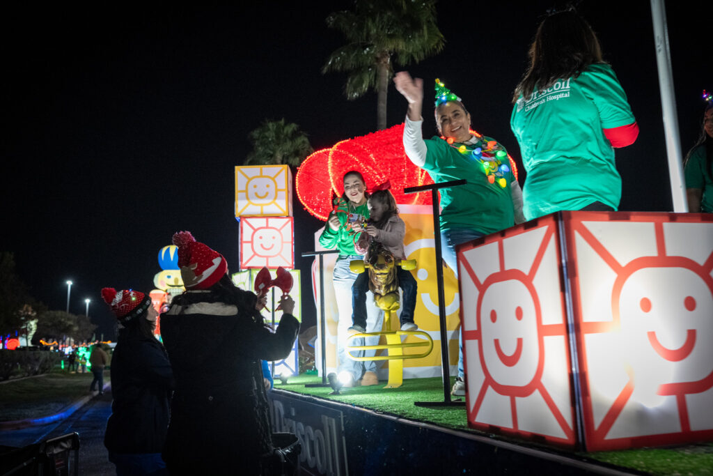 That night was the Driscoll Electric Parade, and it couldn’t have been more different in tone—in the best way possible. The parade is designed to bring the holiday experience directly to the children and families at Driscoll, especially those who can’t easily leave the hospital. As a photographer and storyteller, what stood out to me most wasn’t just the lights or the floats— it was the excitement from the kids and the families.