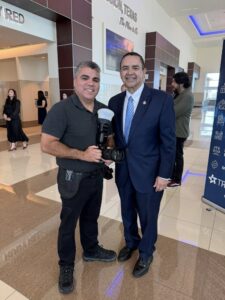 After the program wrapped up, I had a few minutes to speak with Congressman Cuellar. He asked about my upbringing, so I shared a little about my parents and how they served their community.